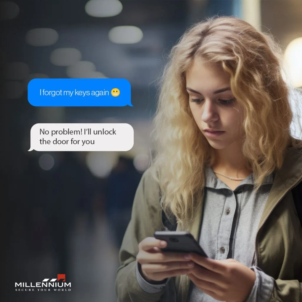 As a parent, few things are as exasperating as getting that text from your teenager: “I forgot my keys again!” Whether they’re coming home from school, practice, or a night out with friends, it seems like forgetting their house keys has become a regular occurrence. But in today’s tech-savvy world, there’s a solution that brings peace of mind to parents everywhere—remote door access via smartphone. If your teenagers are always forgetting their keys, you’re not alone. Let’s explore how remote access can simplify your life and keep your family secure. The Age-Old Problem of Forgotten Keys Teenagers have a lot on their plates—school, social lives, extracurricular activities—and keeping track of a small item like a house key isn’t always top of mind. In fact, research shows that teenagers are prone to losing things, with keys being one of the most commonly misplaced items. This can lead to stress, inconvenience, and sometimes even risky situations as your teens are left locked out, waiting for someone to come home. A Modern Solution: Remote Door Access Fortunately, modern technology has a solution. With a smart lock system connected to your smartphone, you can unlock the door for your teenagers from anywhere. Whether you’re at work, running errands, or even out of town, remote access ensures that your teens can safely and easily get inside, no matter what. The Benefits of Going Keyless Convenience: No more frantic texts or calls. With just a tap on your phone, you can let your teens in instantly, providing them with the security of home, even when they’ve forgotten their keys. Peace of Mind: Knowing you can always grant access to your home reduces the stress of lost keys and eliminates the need to hide spares around the house—a practice that can compromise security. Enhanced Security: Many smart locks offer additional features such as access logs, so you can see who entered and when, giving you better oversight of home security. Flexibility: You can easily grant temporary access to babysitters, relatives, or trusted friends without needing to hand out physical keys. You can even control when and for how long access is allowed. Why It’s Worth the Investment While traditional locks have their place, the convenience and enhanced security of remote access are hard to beat, especially for families with busy teenagers. This technology offers a seamless way to manage home security while adapting to the unpredictability of teenage life. Plus, the peace of mind that comes from knowing your teen is safe at home is invaluable. Conclusion If you’re tired of those “I forgot my keys” messages from your teenagers, it might be time to consider upgrading to a smart lock system with remote access. It’s a small investment that can make a significant impact on your daily life, offering both convenience and security. After all, if your teenagers are anything like mine, this could be the solution you’ve been waiting for. Millennium UMC (Ultra Mobile Connect) is an advanced mobile access solution that allows users to seamlessly control and manage their security systems from anywhere using their smartphone, providing unparalleled convenience, enhanced security, and real-time access at their fingertips. Ready to simplify your life and enhance your home security?